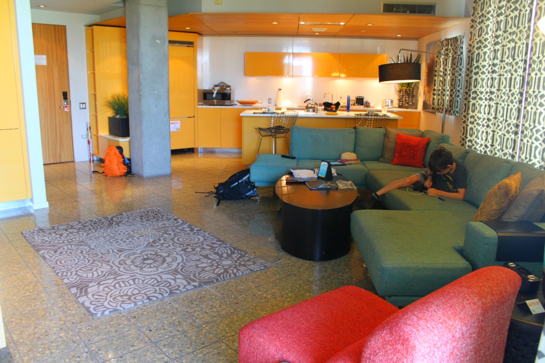 A platform bed, giant flat screen, colorful artwork and fabrics make comfortable furnishings. If you stay in a loft suite, you can of course get a roll away bed and I think that though these rooms are super sexy for couples, or a great place for a group of friends, it’s practical for families too. My ten year old loves Valley Ho for it’s uniqueness, and I love that he is getting a little taste of old school Americana. Everything is quality. Every finish, every piece of furniture, every last detail. All that color is energizing and uplifting. What a relief from all the beige that you see way too often in hotels.