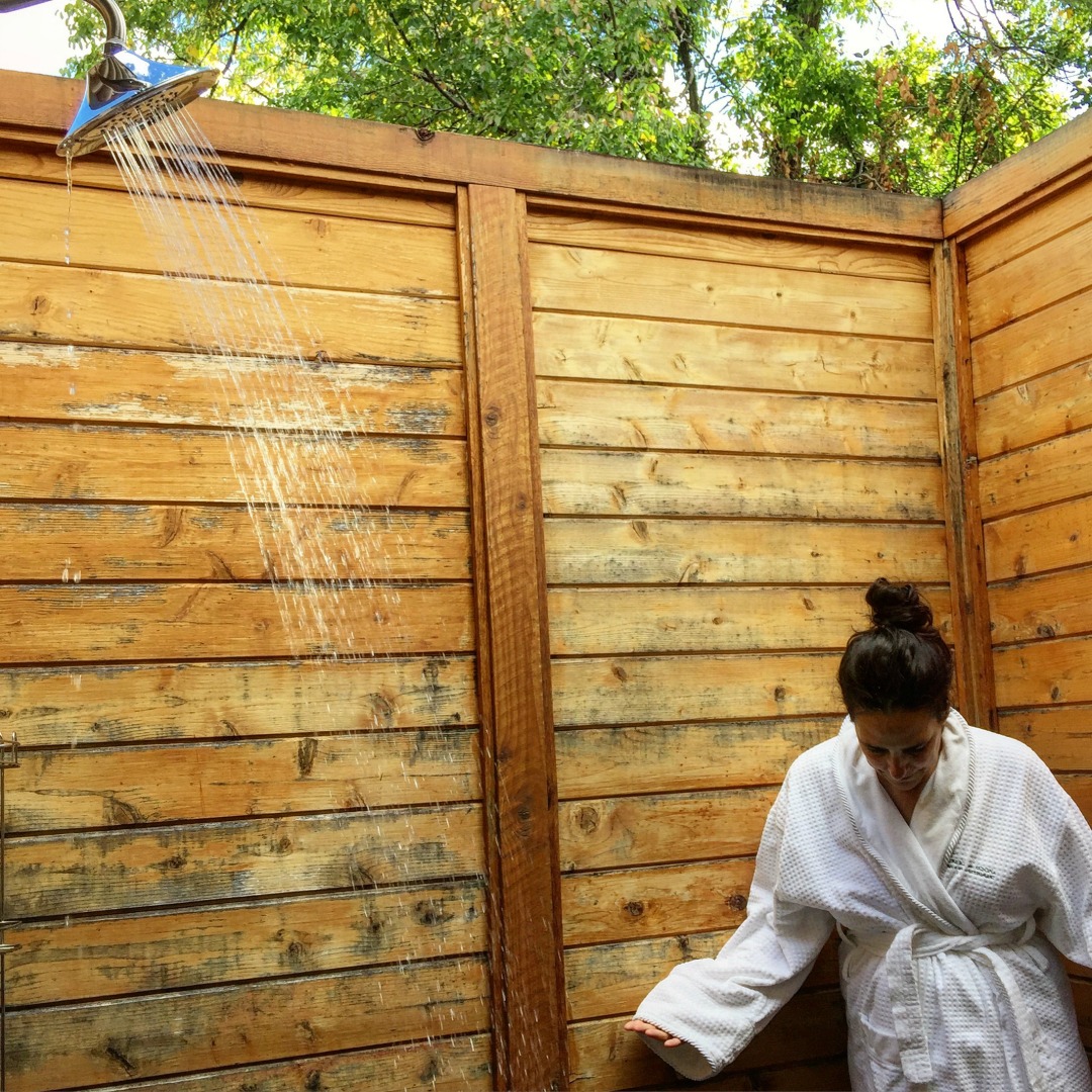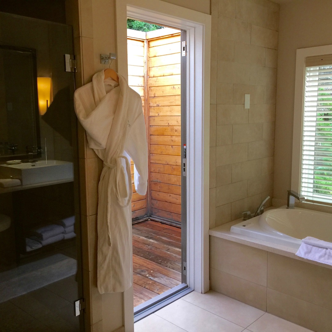 LAuberge Outdoor Shower L'Auberge de Sedona is an excellent choice for accommodations in Sedona, Arizona, and THE place to stay for people visiting with dogs. L'Auberge de Sedona Review, Sedona Arizona Luxury Hotels, Where to stay in Sedona, Best Hotels in Sedona.