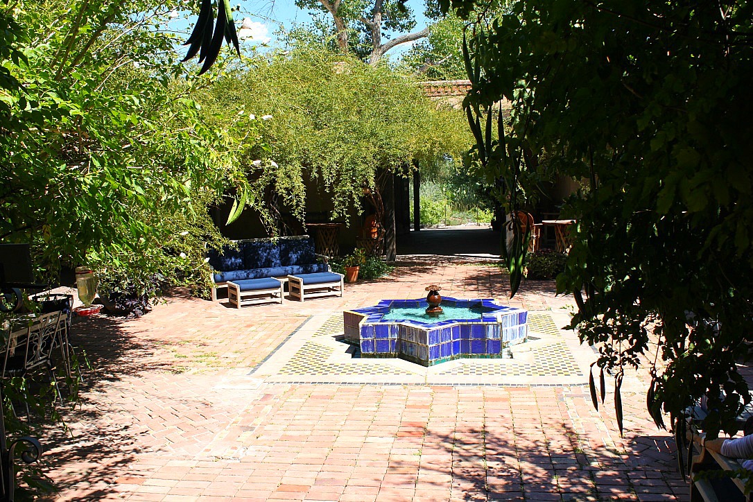 It was love at first site as I made my way to check in through a hacienda style courtyard adorned with ristras (strands of chili peppers), a soothing turquoise blue fountain shaped like a star, and cozy places to sit and enjoy a drink. You’ll probably even see a peacock walk by at some point, as there are two males living on site; one is pure white and both are unfazed by people and will saunter by within a couple feet of you.