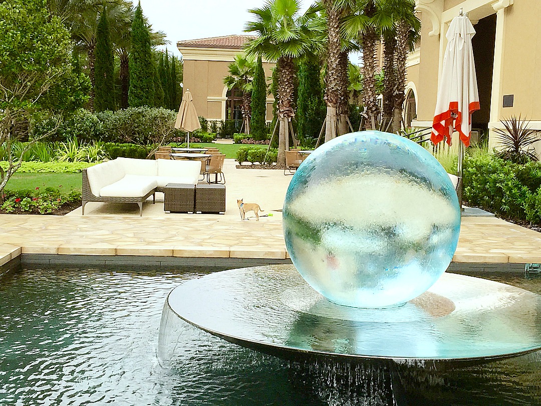 We saw wildlife like heron and even alligators (cute little ones). At night we caught tiny frogs. If nature is not your thing, don’t worry. We looked for it and thought it was exciting, but if you just want to bask in luxury, it’s everywhere. I found it especially wonderful at night, when it was cooler and aglow with the bright blue of the pools, architectural lighting and the glowing giant orb fountain.